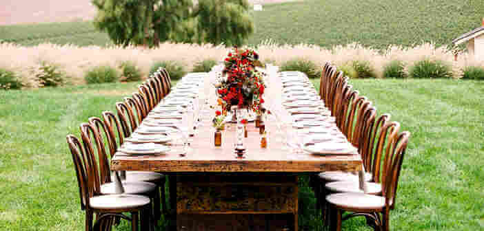 Un’idea molto carina e sicuramente di gradimento ai vostri ospiti, potrebbe essere quella di organizzare il pranzo in campagna, come hanno fatto degli sposi su questo blog di matrimonio.